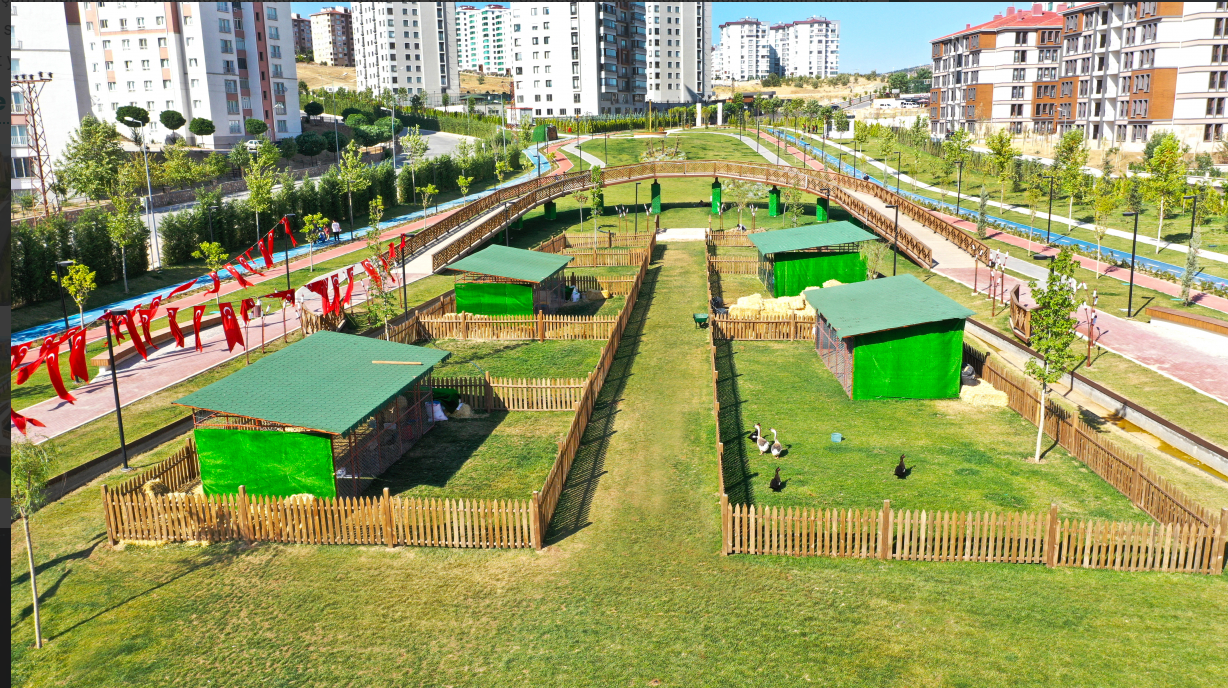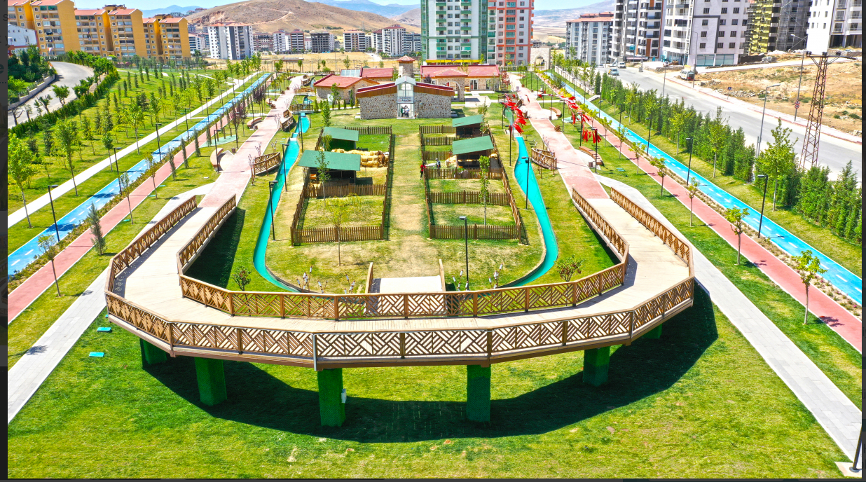 Kent-Köy, 42 bin metrekarelik bitkisel peyzaj alanı, 3 bin metrekarelik yapısal peyzaj alanı, 527 metrekarelik yapı alanı şeklinde tasarlandı. Köy yaşamının şekillendiği etrafı kanal ile çevrelenen ada üzerinde, köy meydanı, köy kahvesi, organik ürünler satış marketi, mescit, köy çeşmesi, su kuyusu, yel değirmeni, su değirmeni, küçük ölçekli çiftlik, meyve bahçesi ve aromatik bitki bahçesi yer alıyor. Adanın etrafındaki bölümlerde ise kent yaşamının birer parçası olarak eğlenme, dinlenme ve sportif faaliyetlere olanak sağlayan 465 metre uzunluğunda gezinti yolu, 780 metre uzunluğunda koşu parkuru, 75 metre uzunluğunda panoramik köprü ve 795 metre uzunluğunda bisiklet yolu, köprü, iskeleler ile oturma üniteleri yer alıyor.45 bin metrekarelik alan üzerinde yaklaşık 43 bin metrekarelik yeşil alan ve aynı zamanda çocuklarımızın köy hayatını teneffüs edebileceği, yaşayabileceği çok güzel bir alandır.